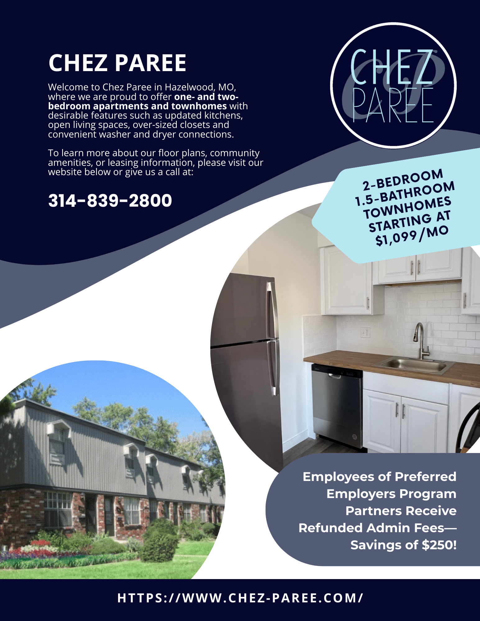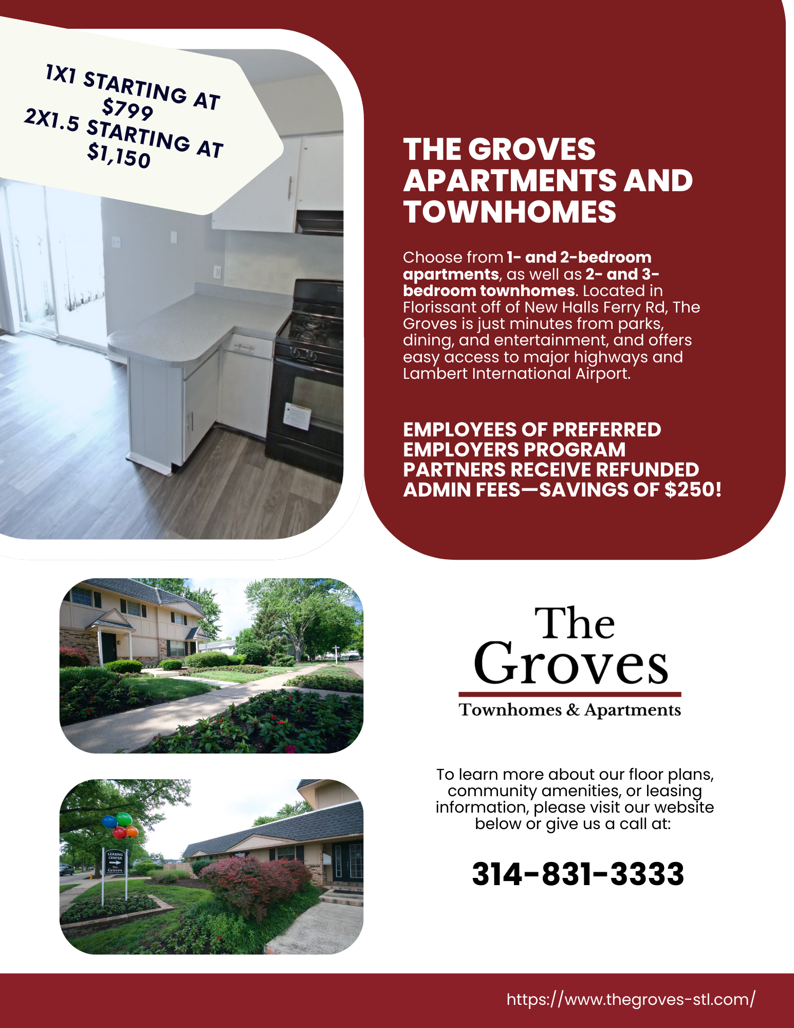 Click through the informational gallery below to learn more about the variety of apartment communities and rental options available to employees through the Preferred Employer Program!